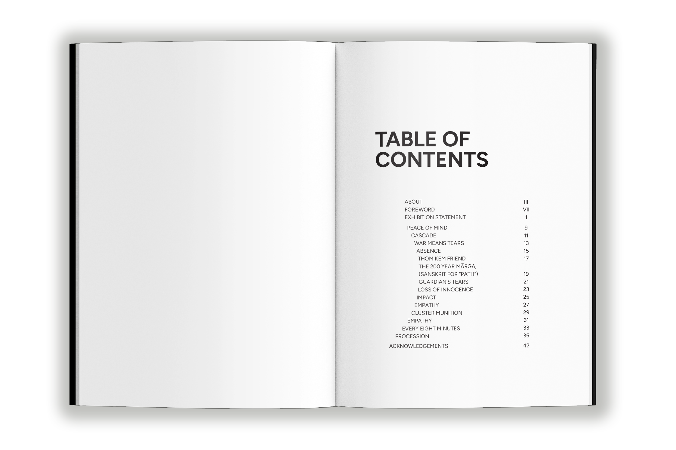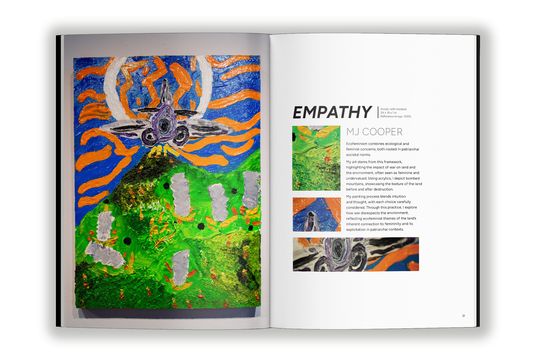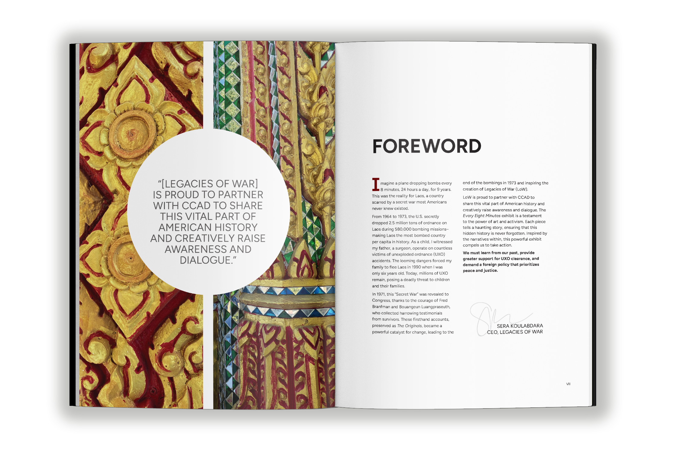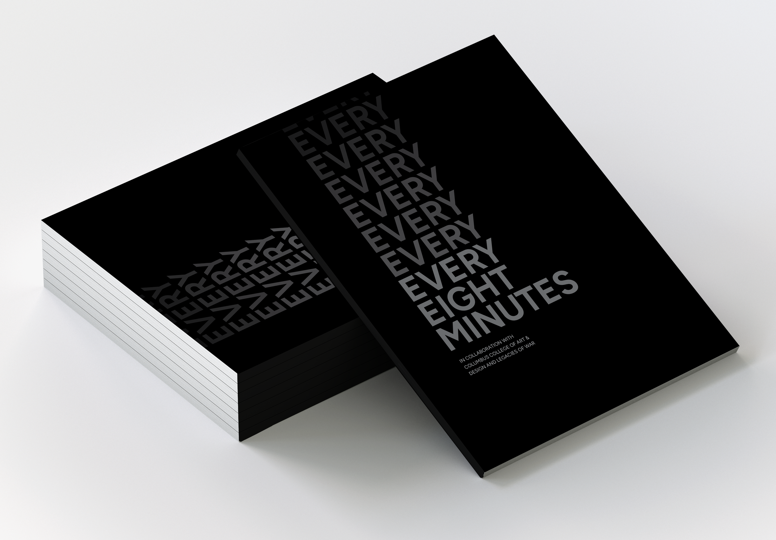 Approached with creating a comprehensive book on the nearly-semester long project, this catalogue is the cumulation of 15 artists’ works as they hung in the October gallery. It is used by Legacies of War for mission outreach, and by CCAD for admission recruitment.
