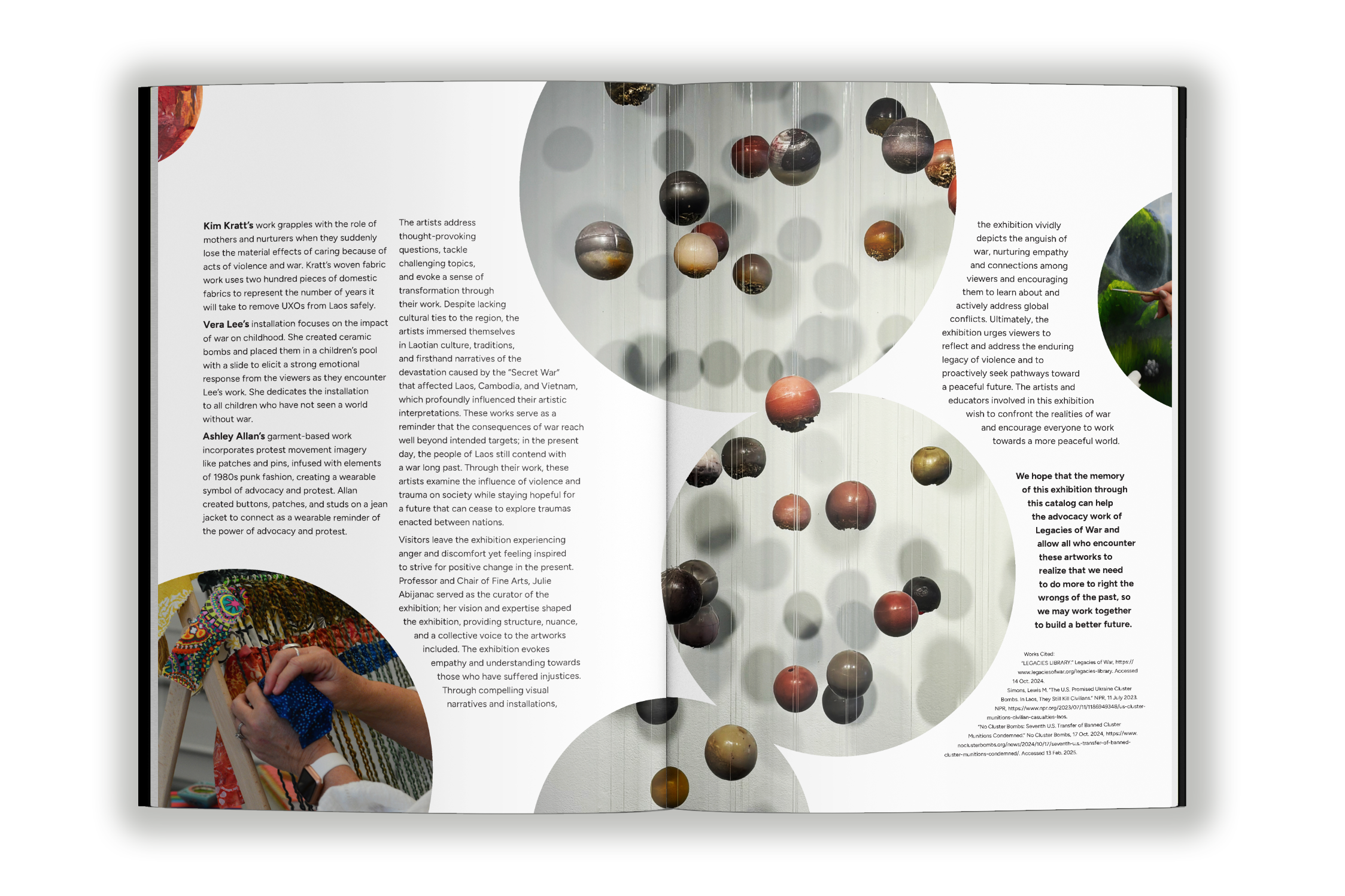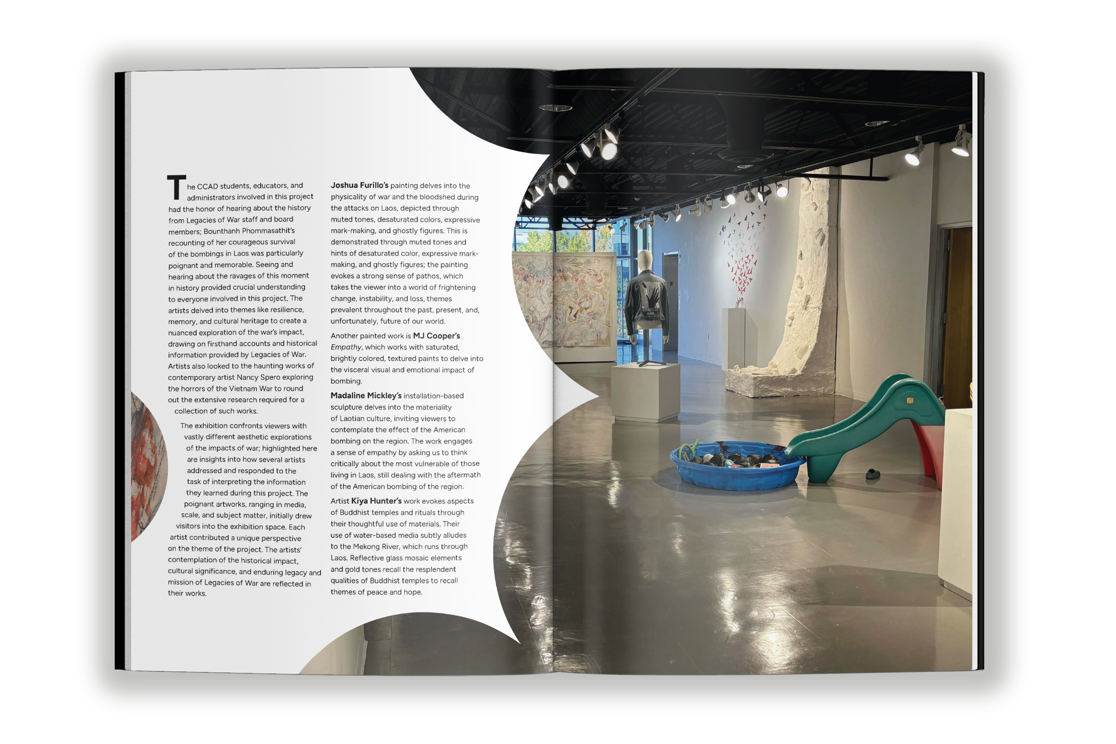 In October 2024, the Columbus College of Art & Design’s Fine Arts Department hosted a gallery exhibition in collaboration with Legacies of War, a non-profit dedicated to addressing the long term impacts that the United States’ wars have had on Laos, Cambodia, and Vietnam.